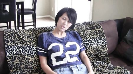 Худая брюнетка со своим ухажером отлично проводила время в домашней обстановке. Они начали сначала просто болтать, а потом постепенно перешли на пикантные темы. Конечно, он захотел увидеть ее сиськи, а она была не против. Брюнетка показала свои натуральные сиськи и даже дала ему их потрогать. Тот принялся большие дойки ласкать, чувствуя, как соски твердыми становятся. А уже потом худая грудастая девица показала ему, как обычно мастурбирует, когда вокруг никого нет и хочется яркого удовольствия.